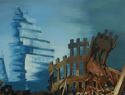 Bild II Wie ein Schrei im Sturm mit berstender Kraft, zurück bleibt Leere, Finsternis, Kälte. Meine Gedanken fliehen, ich kann sie nicht halten. Mein Herz will zerreissen. Vernimm, o Gott, mein Beten; achte auf mich! An einem sicheren Ort möchte ich eilen vor dem Wetter, vor dem tobenden Sturm. Aus Psalm 55 Acryl auf Leinwand/2002 60 x 80 cm EUR 300,- |