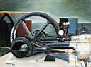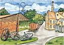 Fuckepott und mehr - textilgeschichtliche Impressionen Diese Ausstellung, im Mai 2002, wurde in dem Arbeiterhaus des Bocholter Textilmuseum gezeigt. Der besondere Bezug zu der Textilgeschichte Bocholts begründet sich in der technischen Faszination der Textilmaschinen und der schönen Architektur der Fabrikgebäude aus der Jahrhundertwende. Mein Vater war 37 Jahre in der hiesigen Textilindustrie beschäftigt. Erinnerungen an Ruinen ehemaliger Textilfabriken, Überbleibsel aus dieser Zeit, wie Driessens Schornstein, Fuckepott, sowie die noch erhaltenen Industriegebäude an der Aa sind Grundlage für diese Bilder. Diese Ausstellung ist "Eine Hommage an meine Eltern und meine Heimatstadt".  |